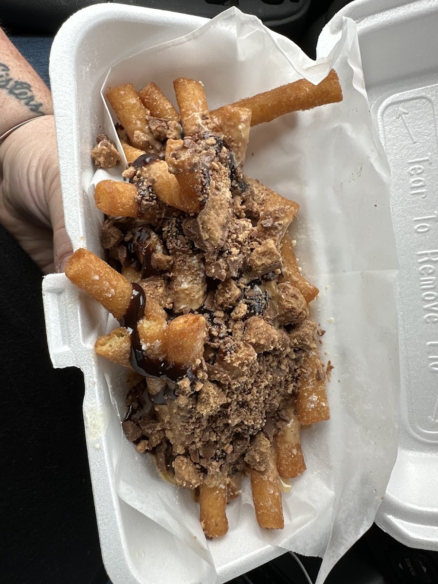 Another must-try? The Peanut Butter and Chocolate Funnel Cake Fries. This sweet treat hits all the right notes with its crispy texture, warm funnel cake flavor, and decadent drizzles of chocolate and peanut butter. It’s indulgent in the best way, and perfect for sharing - or not.