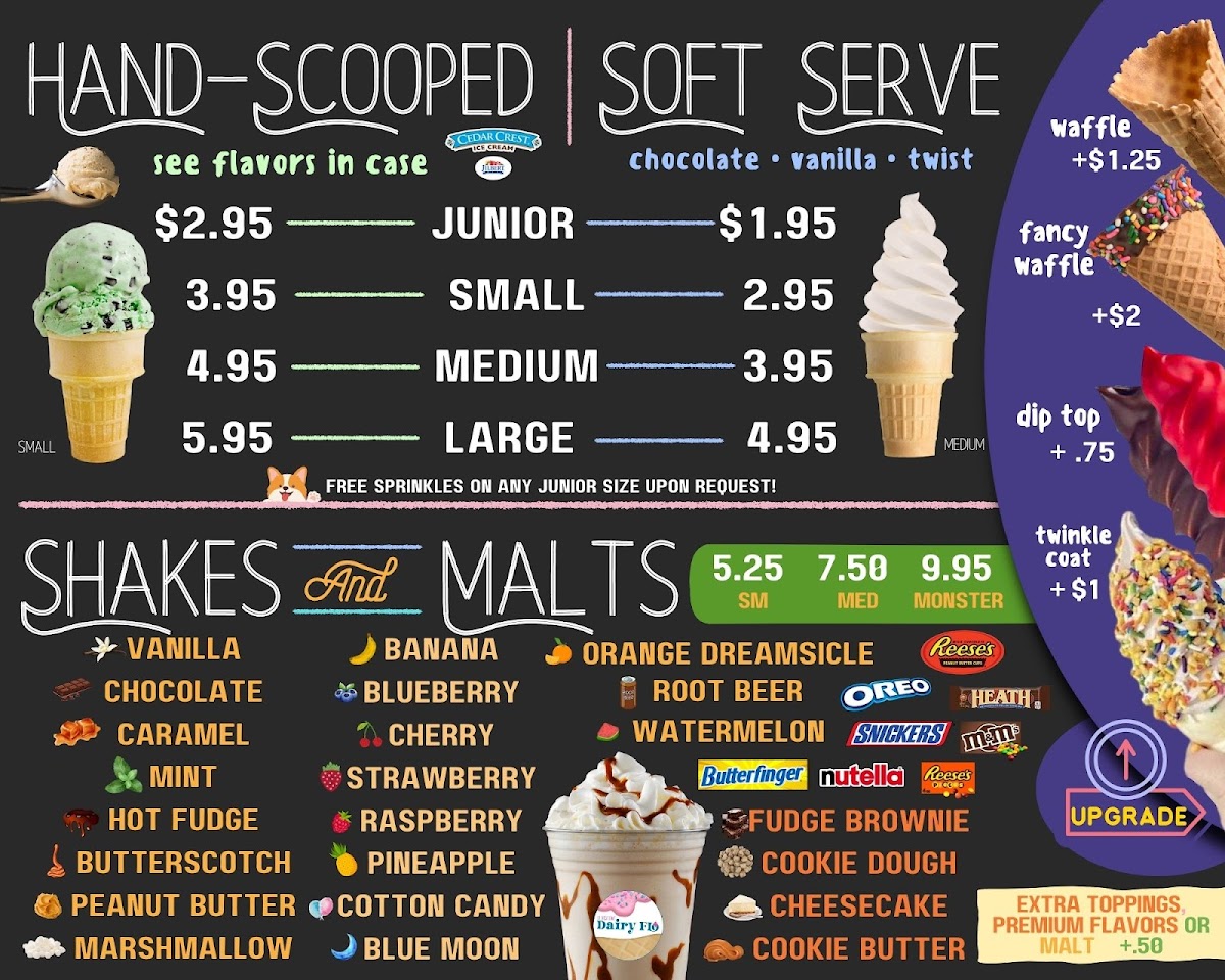 Gladstone Dairy Flo delivers a delightful balance of comfort food, sweet indulgences, and family-friendly options at 924 Delta Ave, Gladstone, MI. The Apps & Sides section is a strong opening act, featuring crispy Onion Rings, savory White Cheddar Cheese Curds, and the decadent Loaded Funnel Cake Fries (Lg), all made better with Brooke's Homemade Ranch Cup. Sweet tooths will be drawn to their Ice Cream Treats, including the playful Narwhal Sundae, creative Wolf Of Wallstreet Sundae, the nostalgic Banana Split, and the fruity Blueberry Buckle.