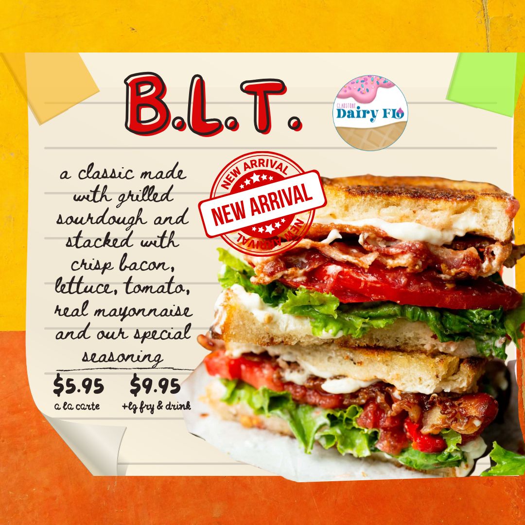 Toasted sourdough meets a pile of crisp bacon, lettuce tomato and real mayo.